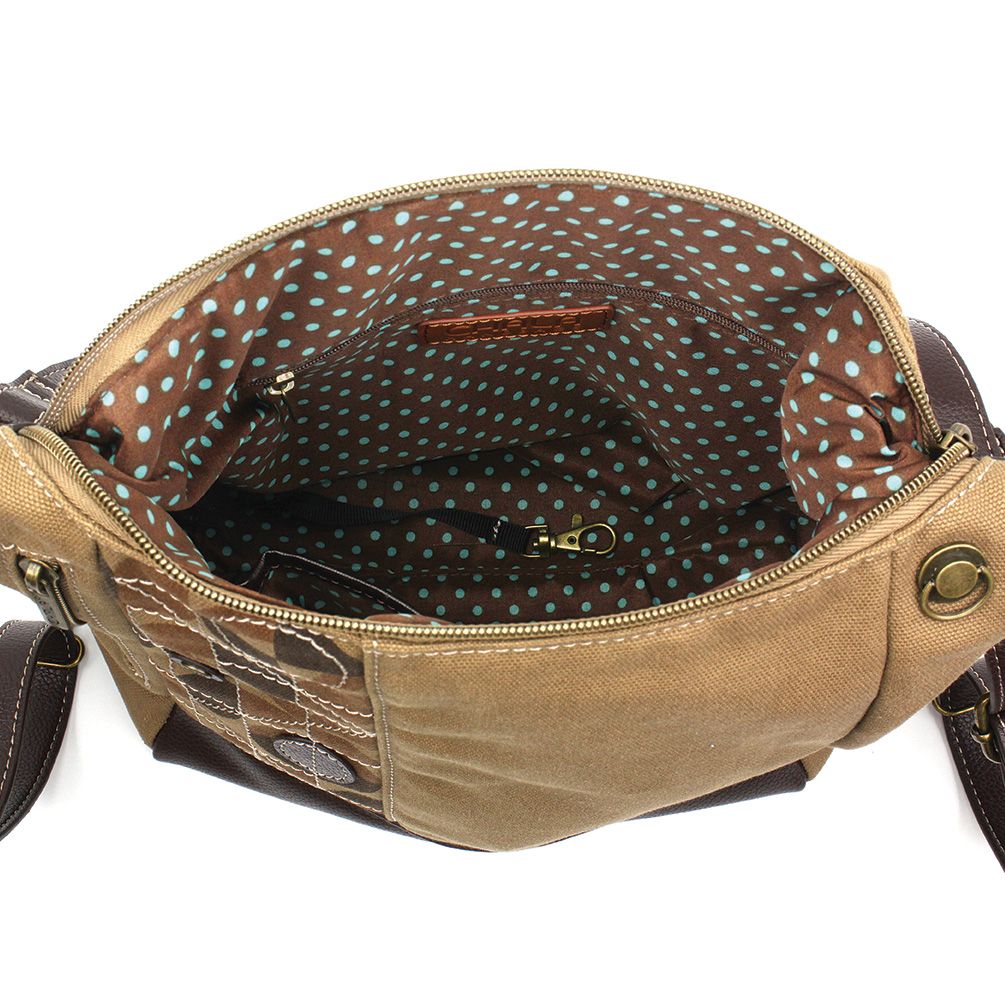 Signature brown and teal polka dot lining